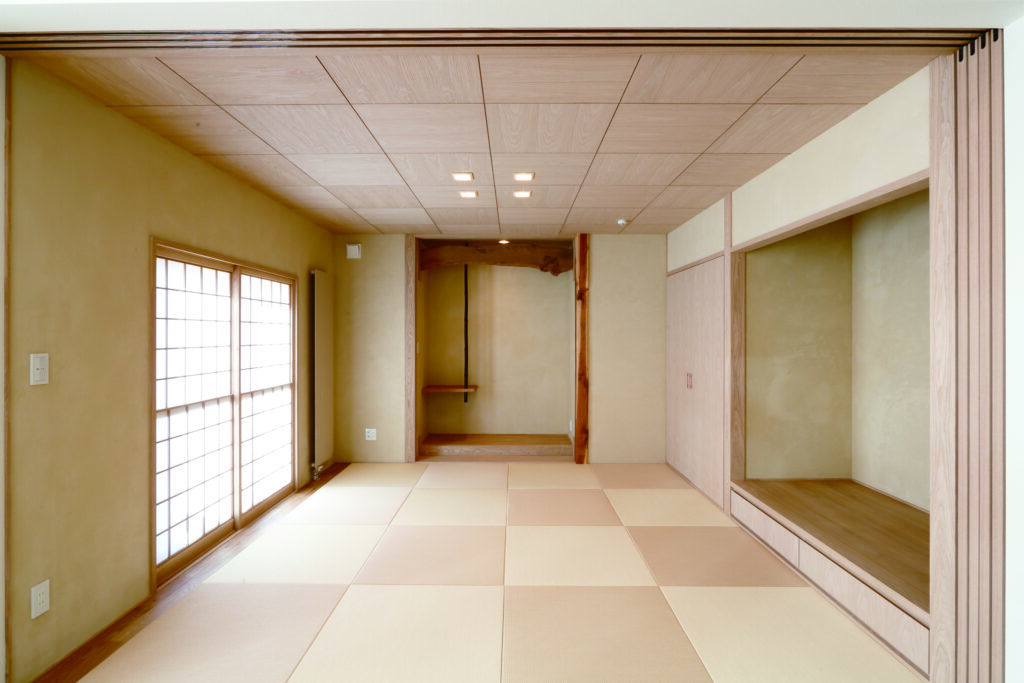 本格的な床の間と地窓が美しい、柔らかな光に包まれた和の空間