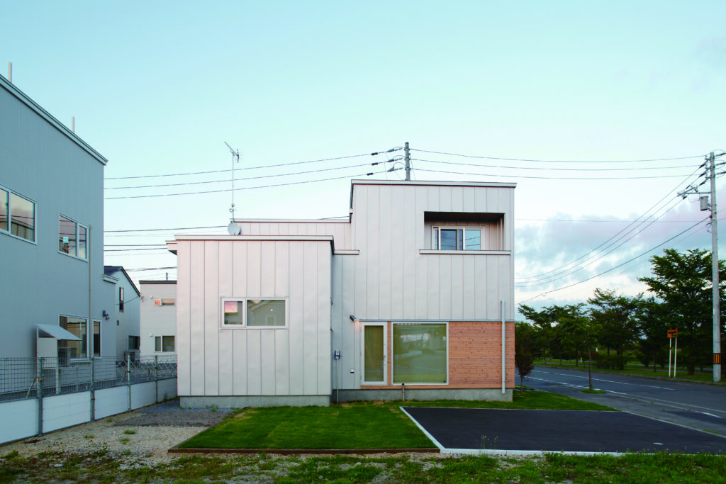 優しい木目と金属外壁のコントラストが美しい、落ち着いた佇まいの外観。